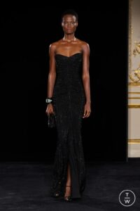 Em um desfile com forte senso de disciplina estética, a Armani apresentou 63 looks em uma paleta que mescla verde jade, rosa suave e preto. A coleção explorou linhas estruturadas e tecidos fluidos, com bordados e detalhes orientais sutis, finalizando com um vestido de noiva que equilibrava sobriedade e luxo artesanal.