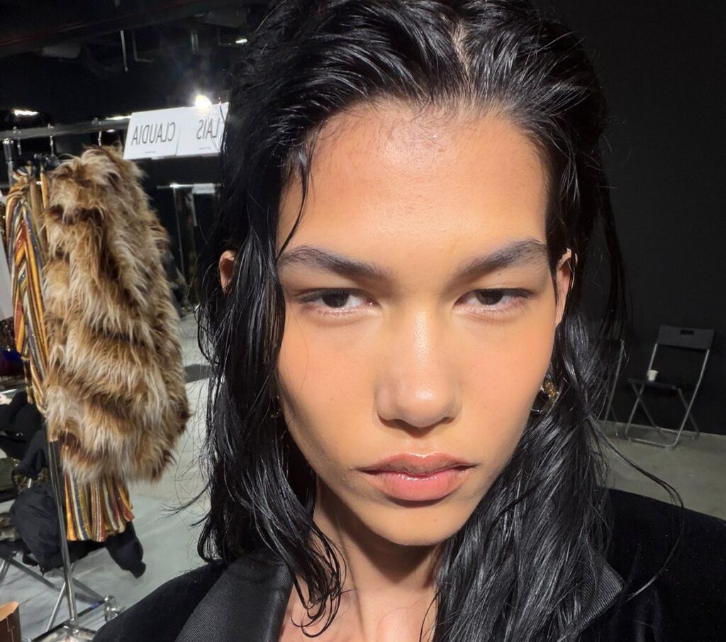 Gabriely Dobbins vem despontando: debutou na moda internacional recentemente, em outubro de 2025, eleita na ocasião pela poderosa Chloé. Antes do sucesso na moda, Gabriely chegou a cursar Farmácia e atuar como maquiadora, até ser revelada como modelo.